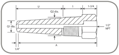Heavy Duty Tapered Thermowells for 1/4" & 3/8" Diameter Elements